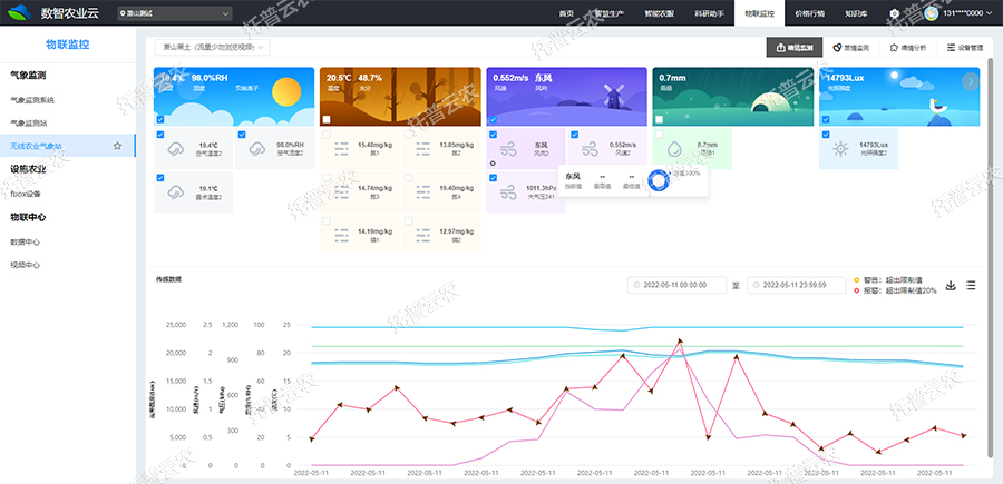 4、超限預警設置:用戶可預置常用作物報警配置,設置最低最高超限值,平臺可自動進行數據預警分析。